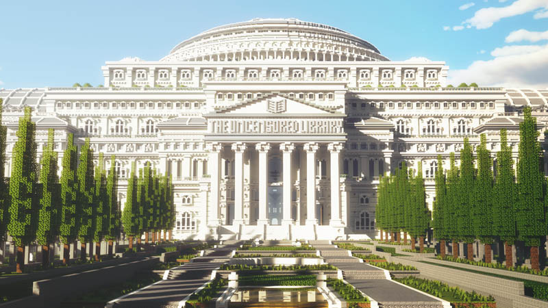 L’ONG a sorti le grand jeu au niveau mise en scène, la compagnie BlockWorks forte de 24 personnes a été chargée de réaliser le bâtiment de la librairie, en style néo-classique qui selon James Delaney « évoque souvent la culture et la connaissance, mais nous l’avons utilisé pour signifier la liberté de savoir« . Pour l’avoir visité in-game, l’édifice est impressionnant, on se sent petit face à cette solennelle bâtisse et tout ce qu’elle représente.