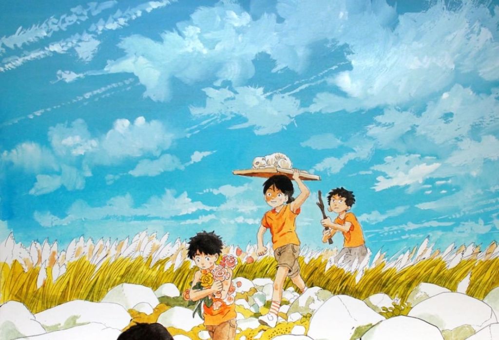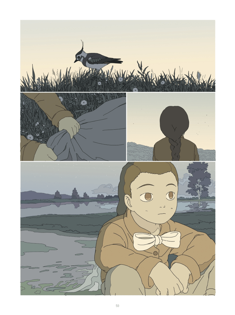 À se pencher un peu sur les créations de Jade Khoo, on décèle immédiatement un goût prononcé pour le bucolique et les paysages ruraux. Sa BD est un florilège de plans larges sur des plaines agricoles, des collines ou des ruisseaux, au milieu desquels les personnages semblent minuscules.